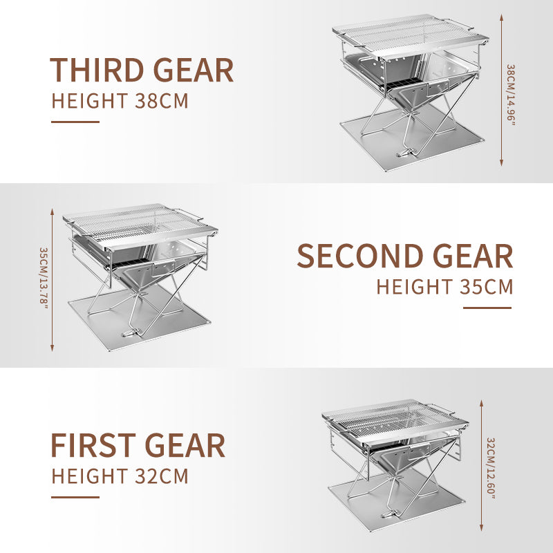 Material: Grill: 304 stainless steel; Fire place: 430 stainless steel