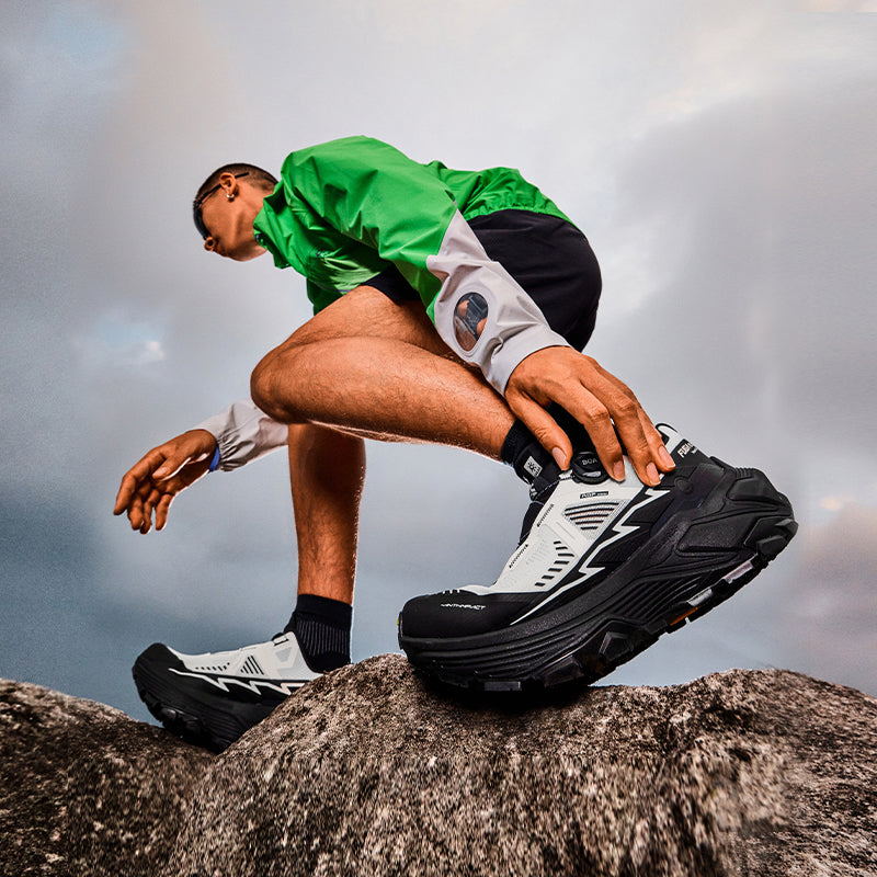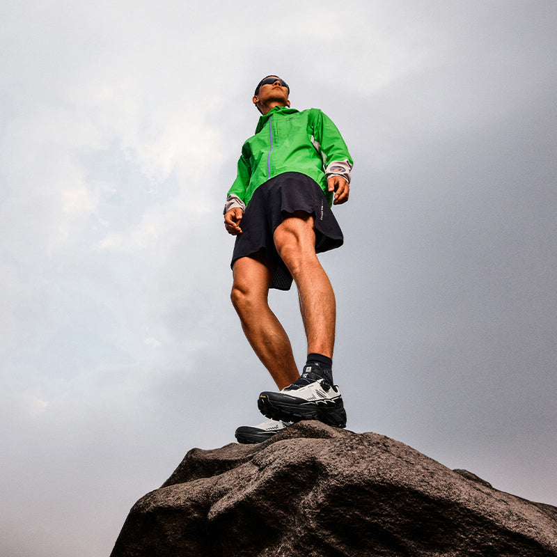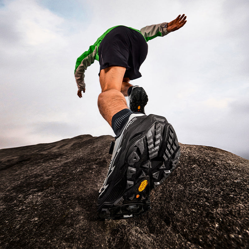 ●Multi-directional triangle lugs on forefoot provide powerful grip on uphill trails