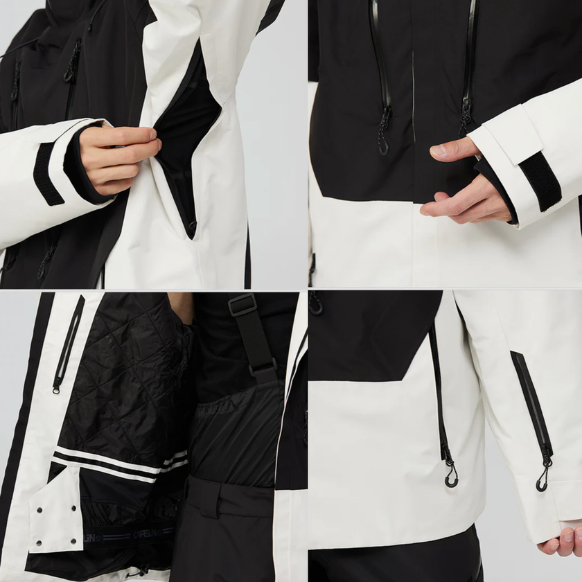 A waterproof and breathable snowboarding jacket, insulated to keep you warm even in severe weather conditions. Versatile for various winter activities such as downhill skiing, snowboarding, and other snow sports, providing reliable protection and comfort.