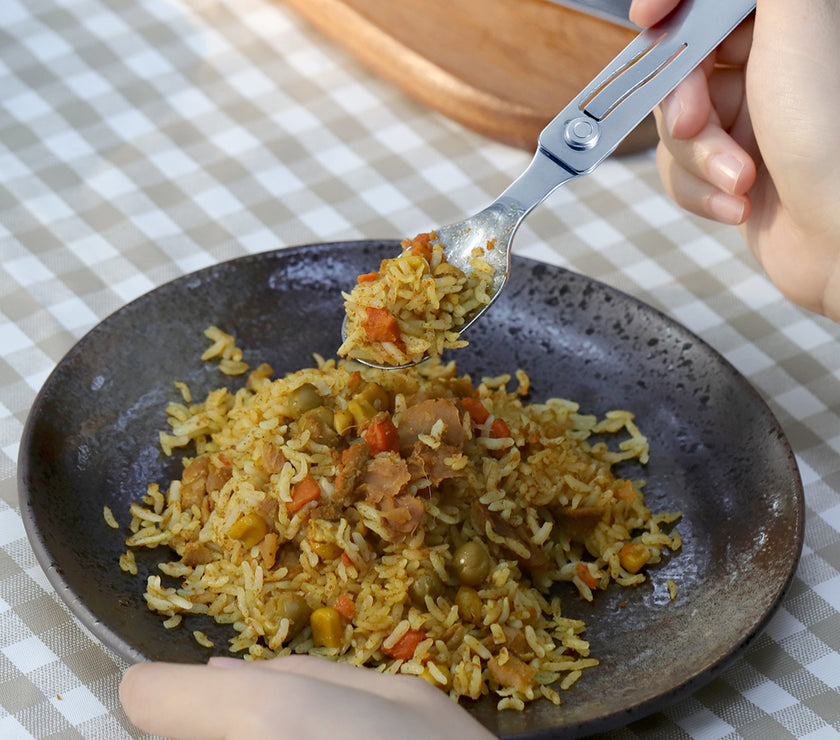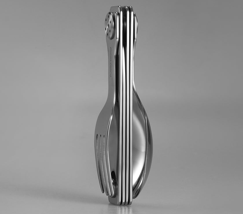 Crafted from food-grade 420 stainless steel, the C1 is durable, rust-resistant, and easy to clean. Its unique magnetic folding design allows each utensil to fold securely, saving up to 50% more space than traditional cutlery.↳