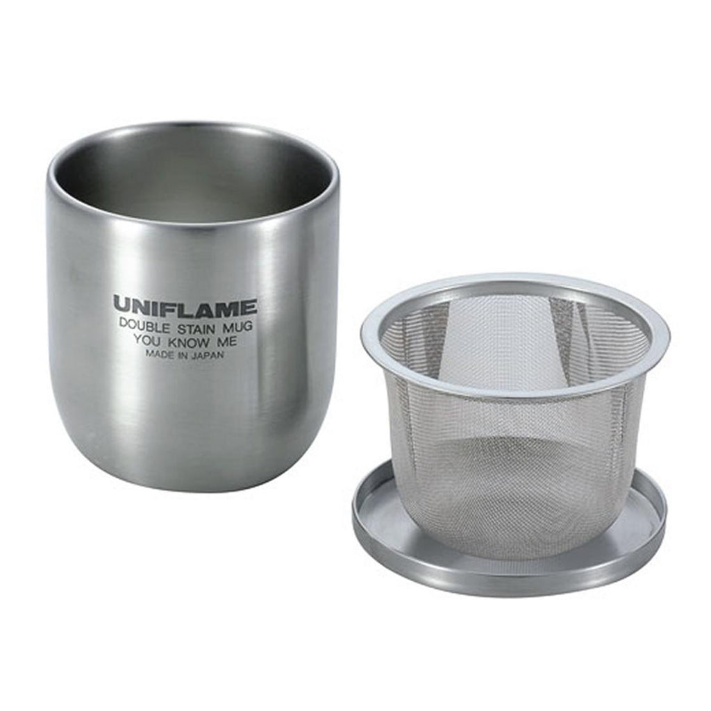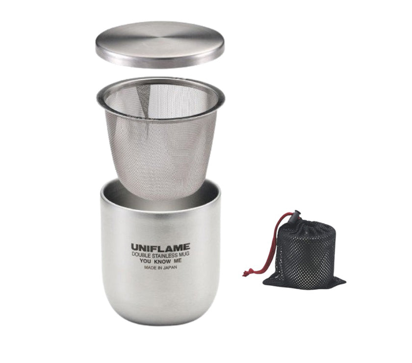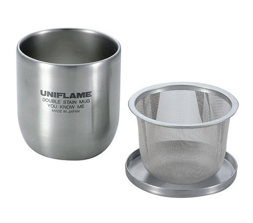 An authentic double stainless steel mug that comes with a tea strainer and lid.