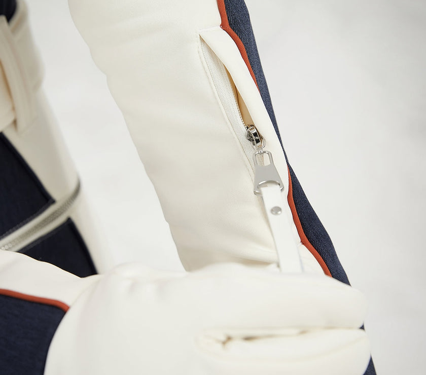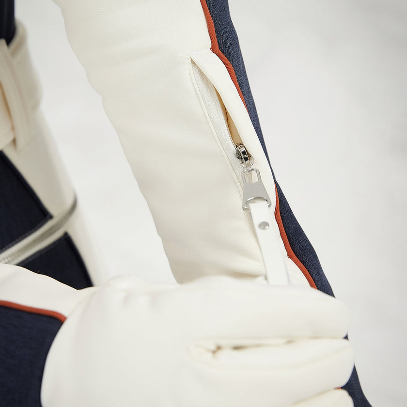 - Forearm ski pass pocket for quick access in and out of ski areas
