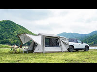 Designed to attach to the rear of most SUVs for an extended camping space.